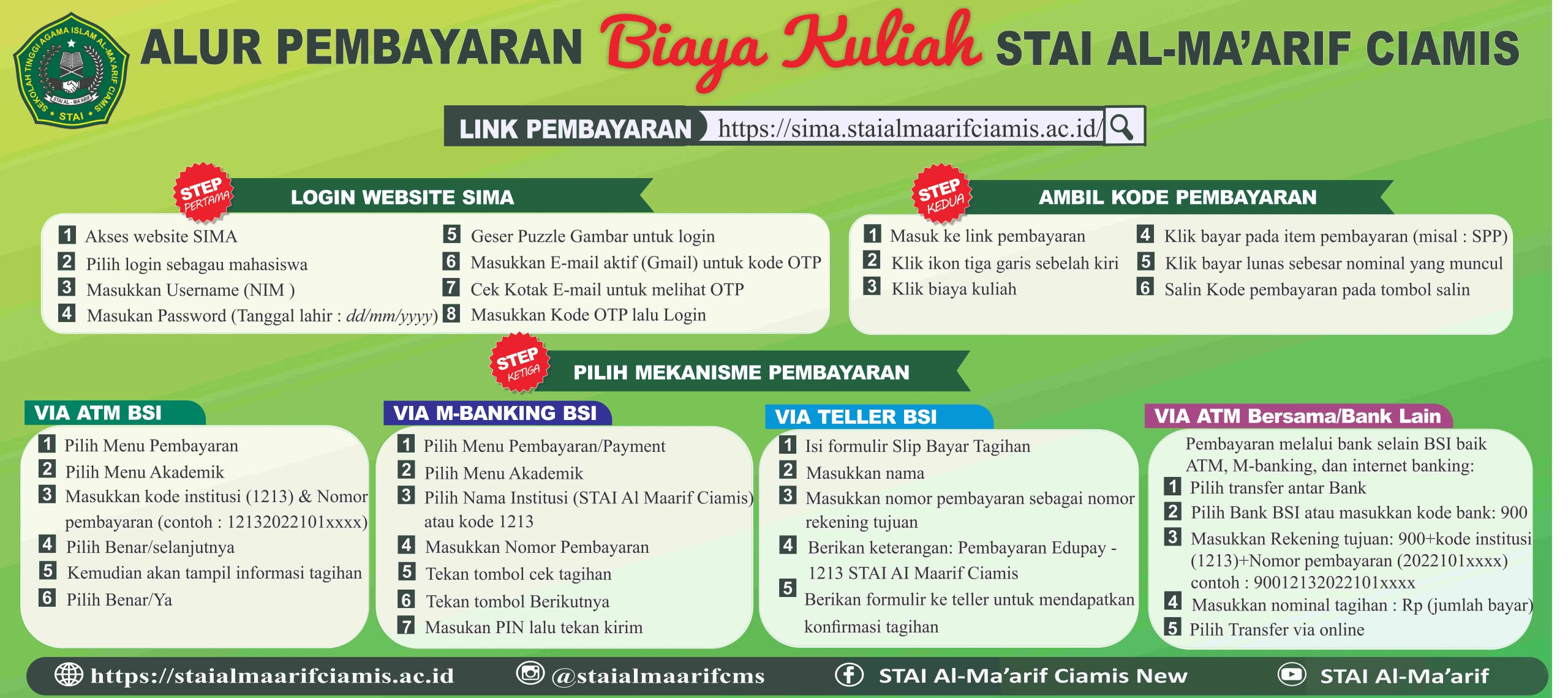 Link Pembayaran : https://sima.staialmaarifciamis.ac.id/login/